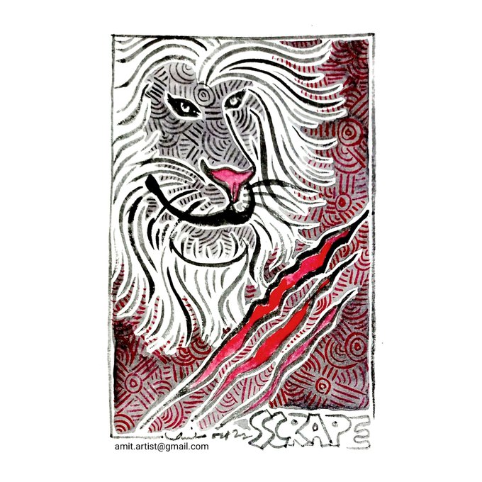 Day-18: #Scrape #lion #wildlife 31 days art challenge #inktober2022 #Inktober #amitartist #amitpainter #delhiBEES #art #drawing #inkart #inkdrawing #illustrator #illustration #watercolor #watercolorpainting #inktoberchallenge #wildlifeart #lionart @inktober