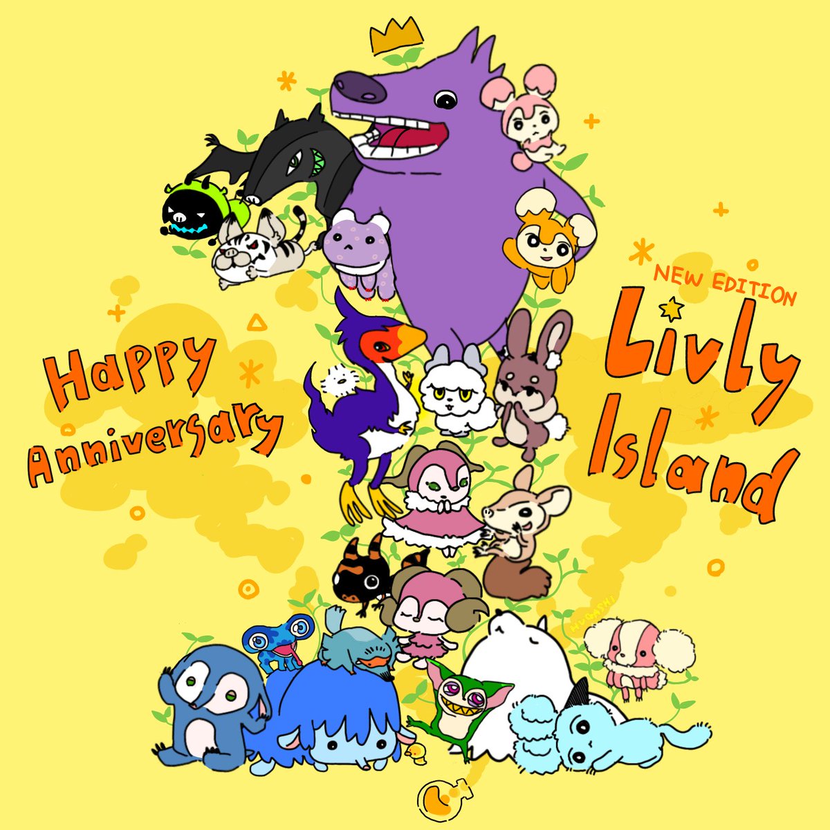 Happy Anniversary 〜🌺🌺🌺 リヴリーたちの好きな動きっぽく描いてみました。みんないろんな動きしてていいね!!!!健やかであれ〜 #LivlyAnniversaryFanArt #リヴリー #リヴリーファンアート