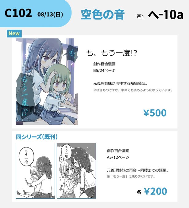 お品書きです! 2日目へ-10aに居ますので、よろしくお願いします。 (既刊たくさんあるので、あとで追記します。) webcatalog-free.circle.ms/Circle/17301911 twitter.com/amkn/status/16…