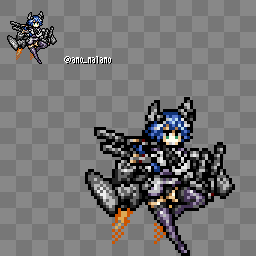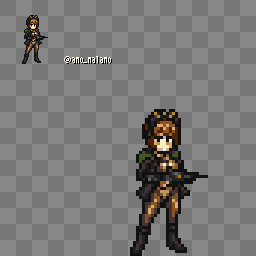 C-79Gハベトロット 滅亡戦争で戦場へ駆り出されたスチールラインの将校。本来は行政業務と情報通信担当。 チャフ散布で味方の回避率を高め、更に自分よりも回避率が高いキャラに標的を付与するアクティブ2が強力。 ちなみに結構でかい。 #LastOrigin #ラストオリジン #ラスオリ #ドット絵 #pixelart