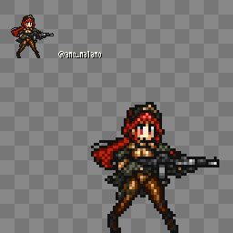C-77レッドフード 戦車に搭乗し、拡声器と赤い旗を持った突撃連隊長。 後方に配置することで前列の味方にバフを与えることが出来る 火属性攻撃を持っているので氷属性の敵が出ても安心。 #LastOrigin #ラストオリジン #ラスオリ #ドット絵 #pixelart