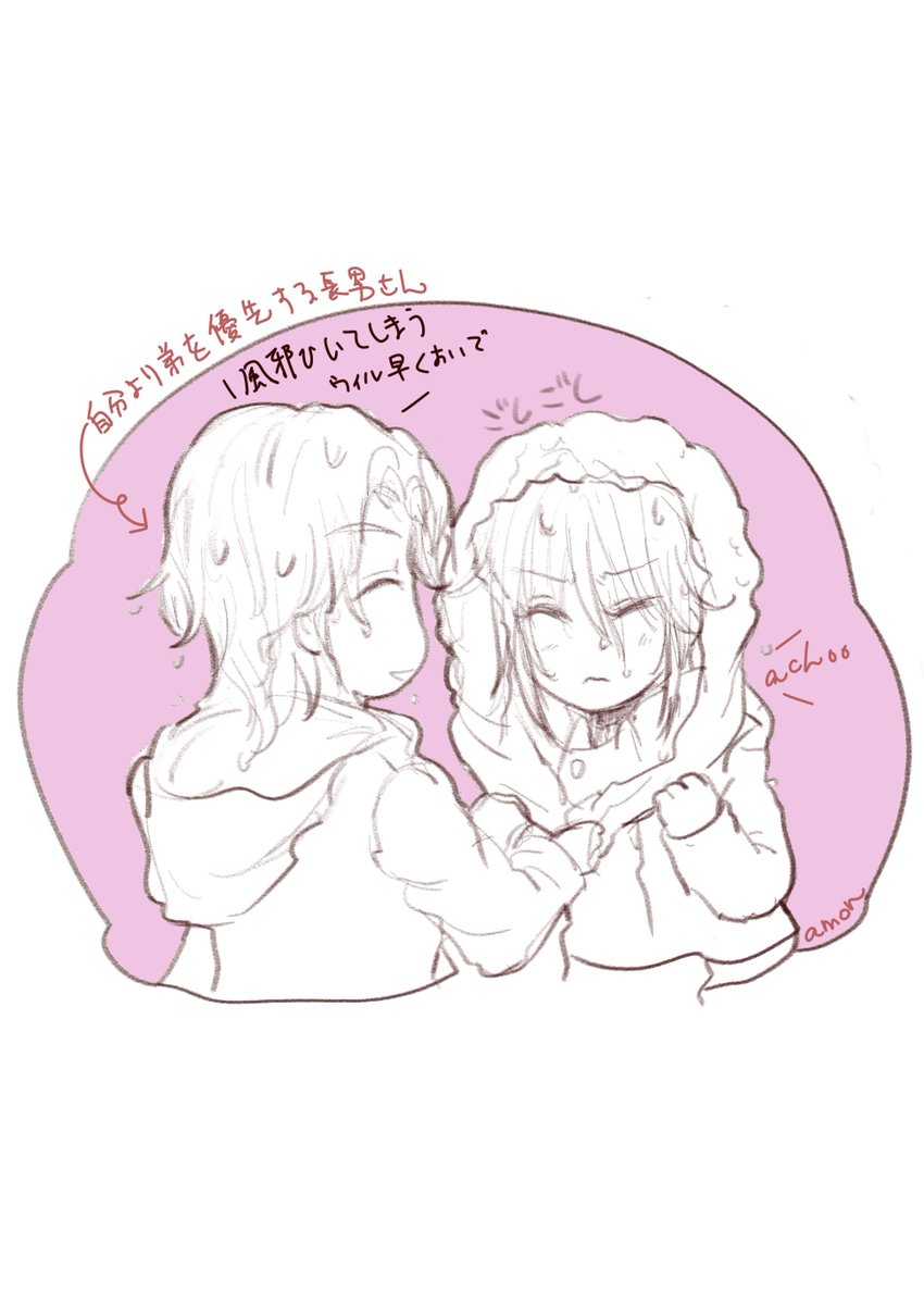 8 34 もしかして表紙ずぶ濡れの後はこのようなやり取りあったではないか、と本誌待ちながら思いました(の落書き) そして同じことはウィがルイに以下略 23/03/02 23:30