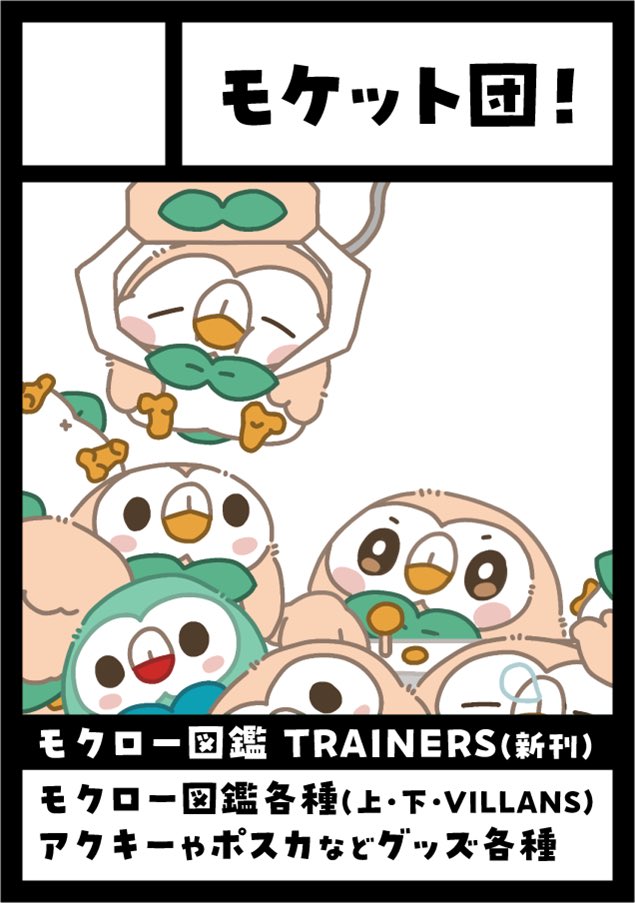 【お知らせ】 悩みの末冬コミ申し込みました!🦉 主人公トレ+ジムリーダー〜四天王のトレーナーが詰まったモクロー図鑑を出したいなと思ってます((oθo)) アクキーポスカアクスタ等も新グッズ多分出ます👌 #C103