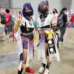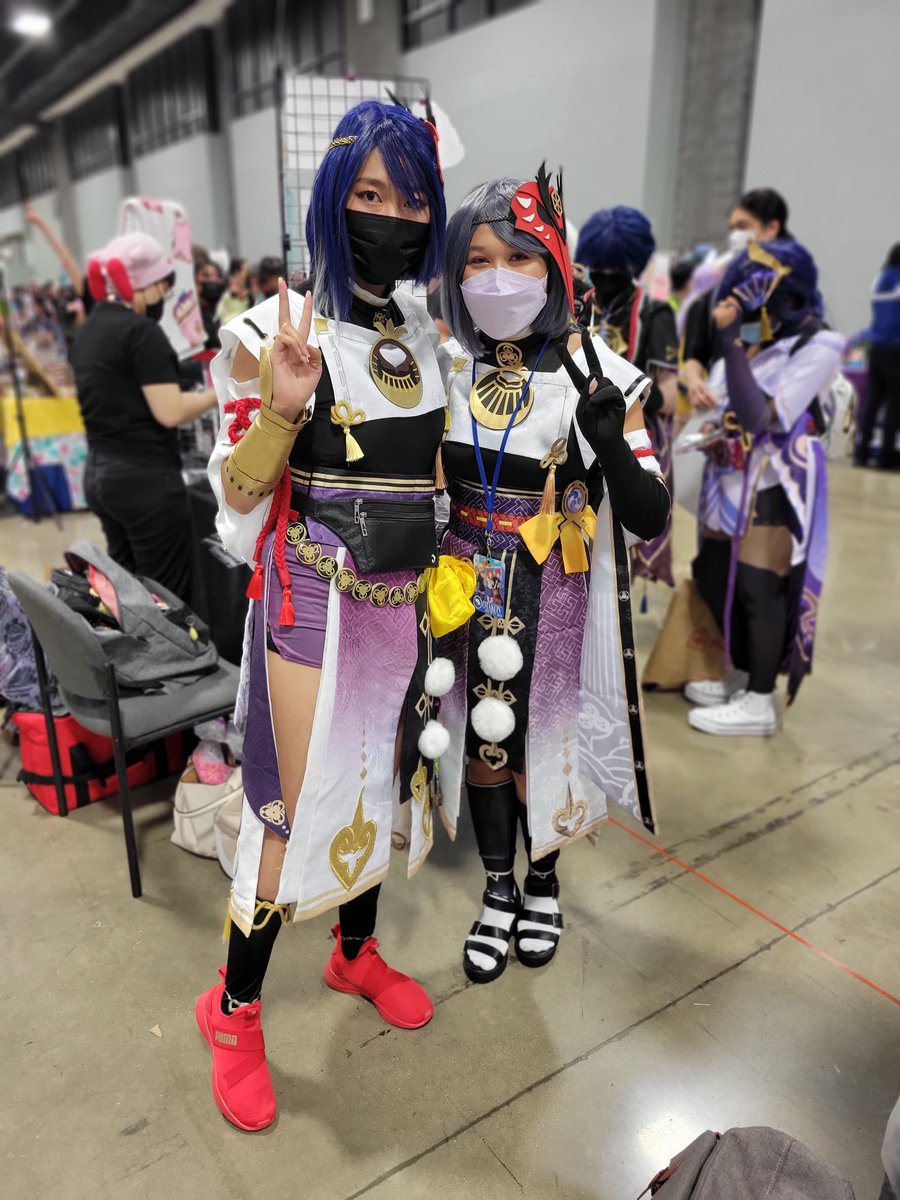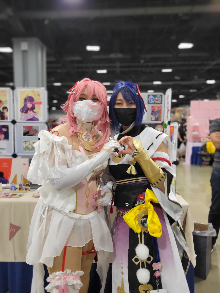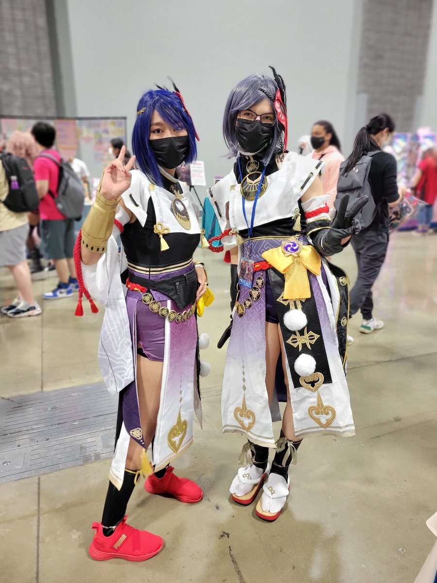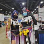 marrying yae miko and collecting all the kujou saras!!! i forgot to get your @'s so i hope these pictures find u lovely ladies!! thanks for taking then w me!! 💜💜 #Otakon2022 #genshincosplay