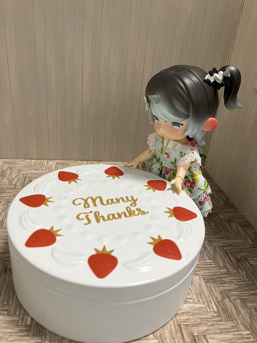 \フォロワー様に教わった撮影方法/ セリアの🍓イチゴのショートケーキ🍰の缶ケースにアンティーユちゃん乗せて撮影すると可愛さマシマシになるのでおススメ〜📸(o´罒`o)✌️ #おはドル