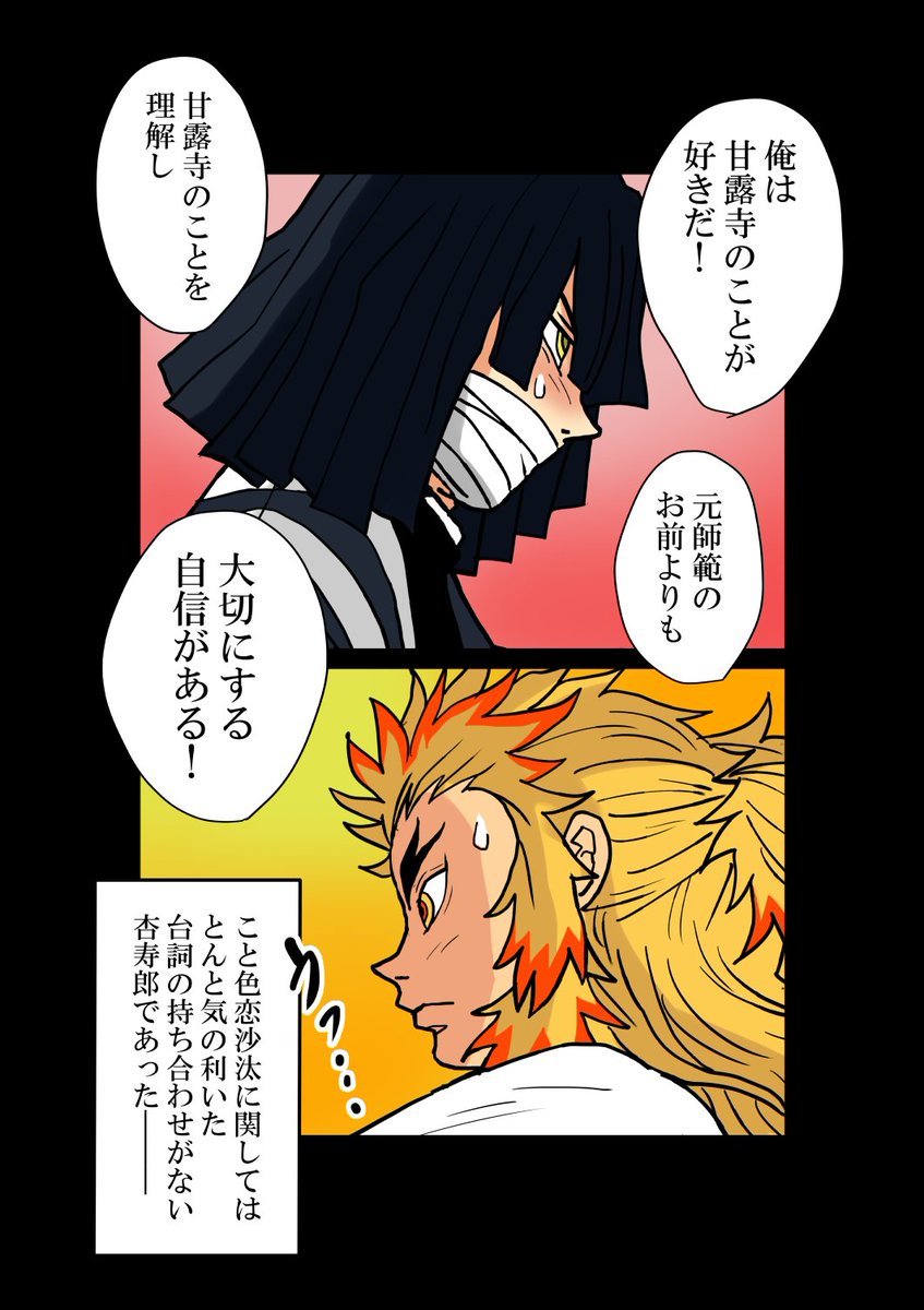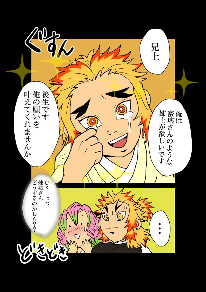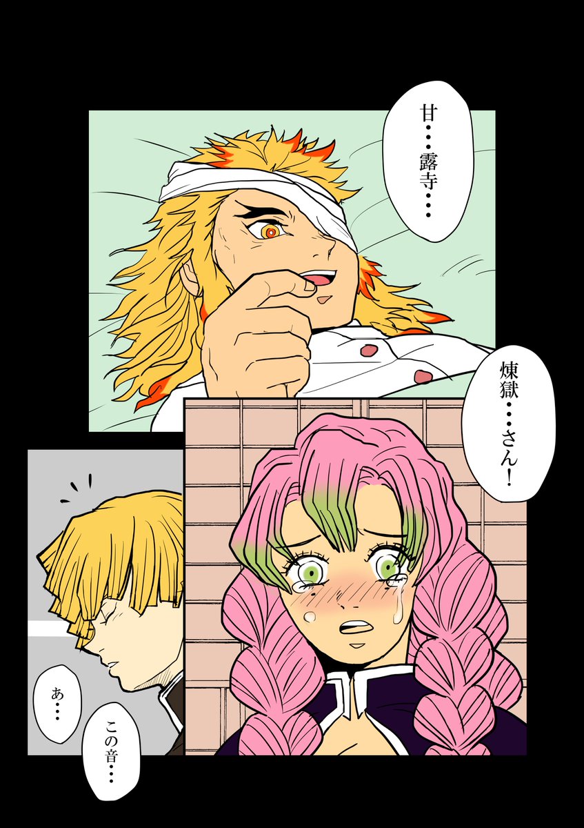 蜜柑さん@orikoumikanのこちらのお話に画を描かせて頂きました😇 善逸くんには二人のイチャラブな音が聞こえてるんだろうけど、傍目から見ても十分アツアツです😚❤️ twitter.com/orikoumikan/st…