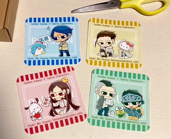 本日ゴールデンカムイとサンリオのコラボ(落選しました)カフェを勝手に開催しました!イツメンで共通して好きになった漫画が珍しかったから、みんなの推しと私が描きたかった房太郎を描きました!特に何かしたわけじゃないけど描けて楽しかった☺️ コースター風ステッカー作ったよ🙆♀️