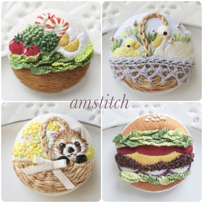 #7月になったのでフォロワーさんに自己紹介しようぜ くるみボタンの丸みを活かした刺繍小物を作っております、amstitch(アムステッチ)と申します。 皆様、7月もどうぞ宜しくお願い致します🙇♀️ 🧵 minne.com/@amstitch #刺繍 #ハンドメイド #フェイクフード