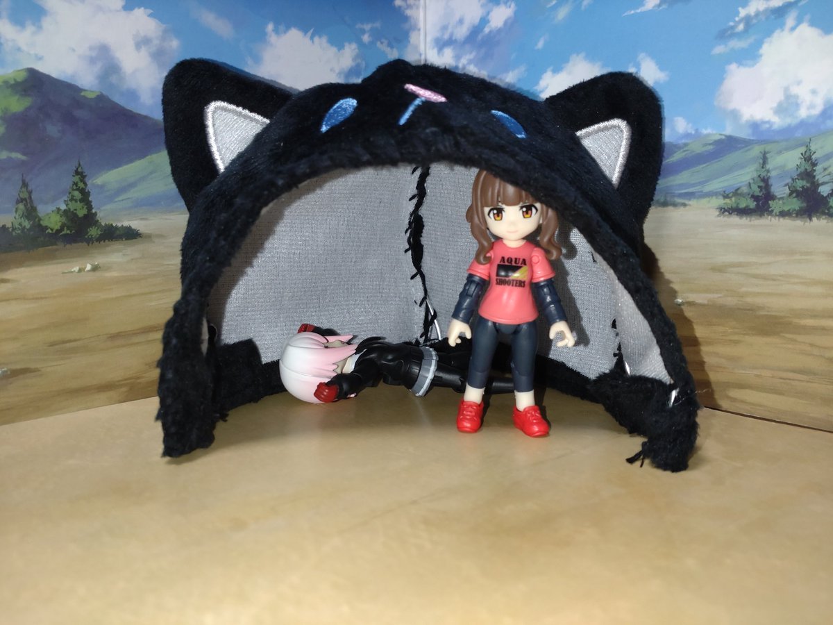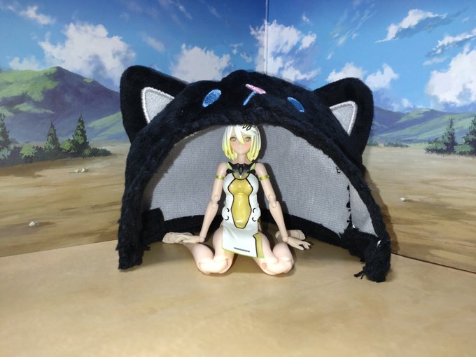 ダイソーのペット用帽子で1/12サイズ位のテント作れないか試してみたらちょっと小さそうだった。 流石の蛍さんもちょっと不満気だぁw デスクトップアーミーとアクアシューターズくらいには良さそう? #蝸之殻 #デスクトップアーミー #アクアシューターズ