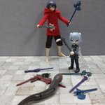 暗黒の武具ピック持てるか実験。 モデルはスクストのサトカちゃんに改造途中のまま4年位経ってるウィッチちゃんとみわちゃん。 敵役はデンキウナギさん。 結果はメガミは普通に持てるけどアクアシューターズはピック部分切り落とすか削らないと持てなかった。 #メガミデバイス #アクアシューターズ