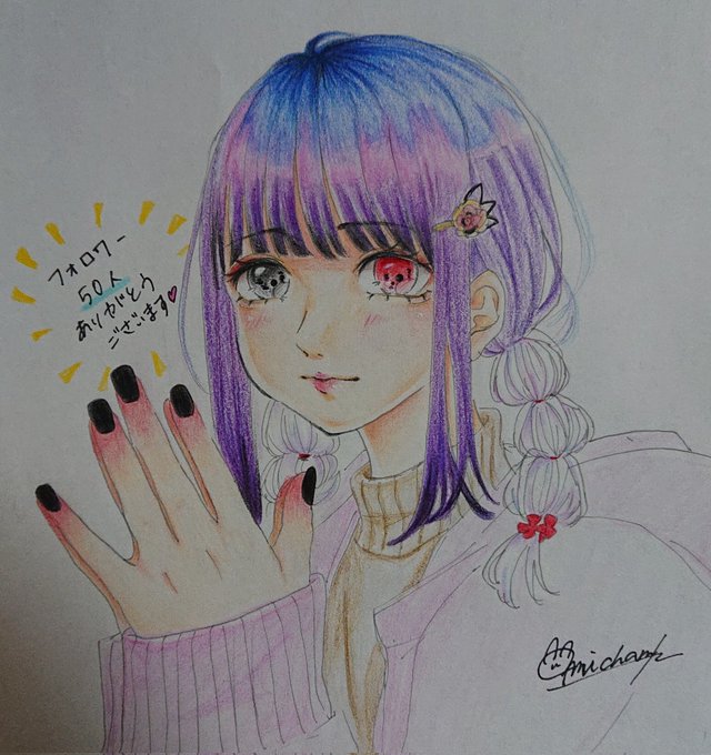 フォロワー50人ありがとうございます( ;˙꒳˙;) これからも絵頑張ります( ੭ ᐕ)੭ #イラスト #イラスト好きと繋がりたい #絵描きさんと繋がりたい #色鉛筆画 #女の子イラスト #冬の創作クラスタフォロー祭 #創作イラスト