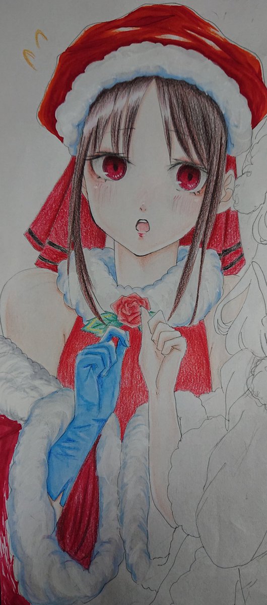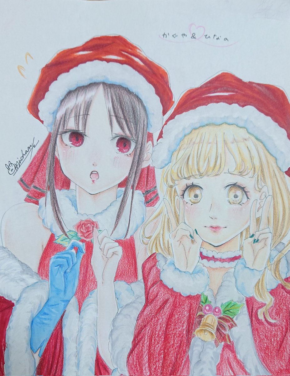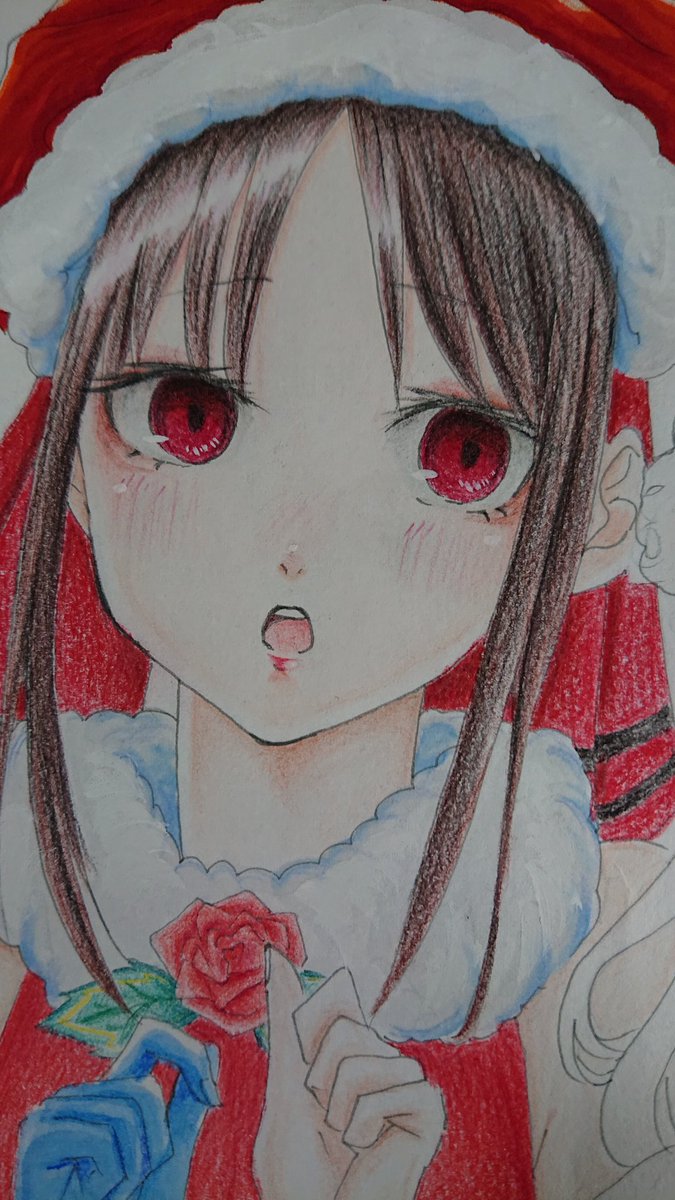 完成しました!今月中ならセーフ!() メリークリスマス🎄((( #イラスト #イラスト好きな人と繋がりたい #絵描きさんと繋がたい #アナログイラスト #かぐや様は告らせたい #かぐや様 #午後0時キスしにきてよ #色鉛筆画 #冬の創作クラスターフォロー祭り
