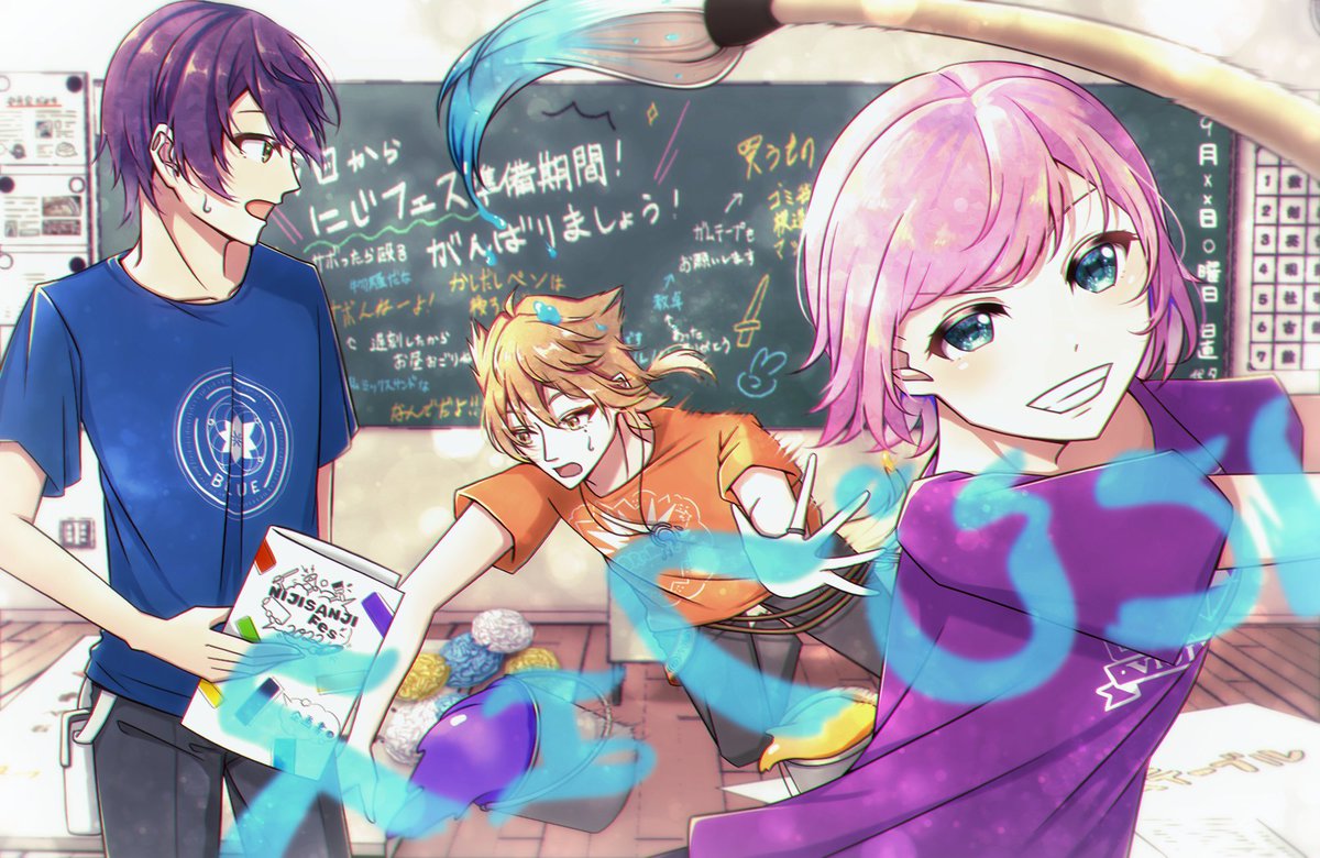24 140 真面目に準備中なトリガー💜💙🧡 #ふれふれにじフェス2022 #金剛力也像 #りりあーと #絵ガク 22/08/28 00:52