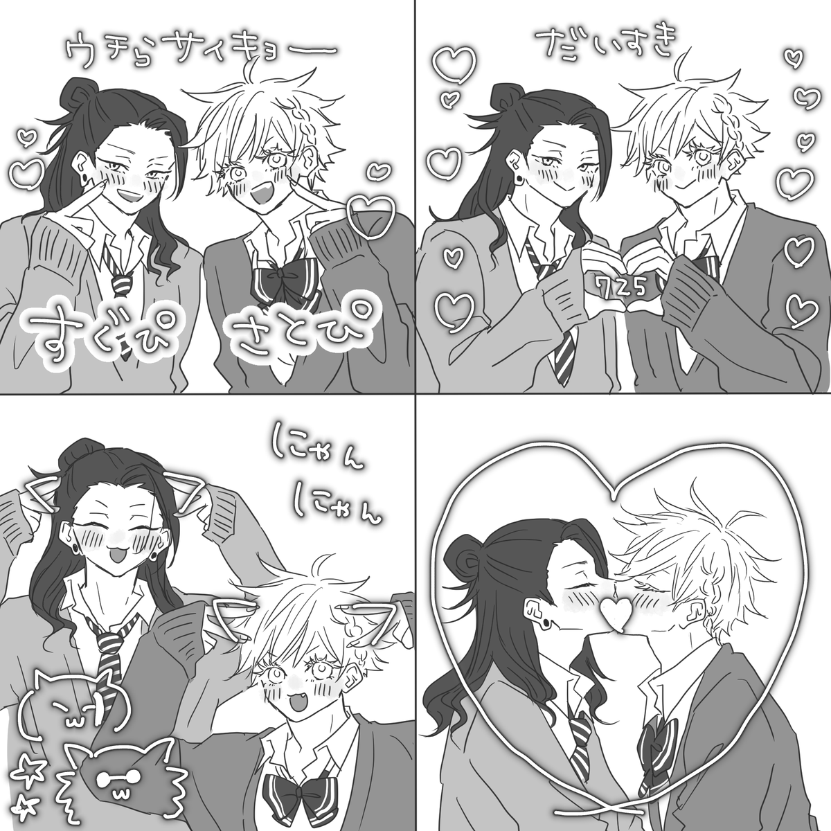 二期ヤッターヤッター!!興奮しすぎて真秋ちゃん(@march_jjt)とちぉるちゃん(@shuwa10melon)とエイミーで二期おめでとう突発絵チャしたよ✌🏻☺️✌🏻🖤🤍祝二期決定!楽しみだね😭💓