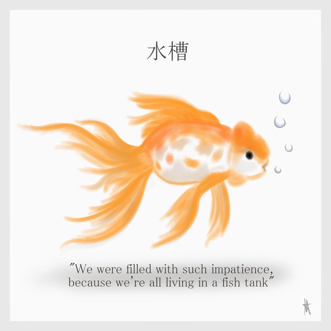 水槽 「僕らは焦りで満たされた、水槽で生きてるから」 "We were filled with such impatience, because we're all living in a fish tank" -Amazarashi (I was bored during class so I did a quick sketch) 08/25/2021 #amazarashi #rkgk