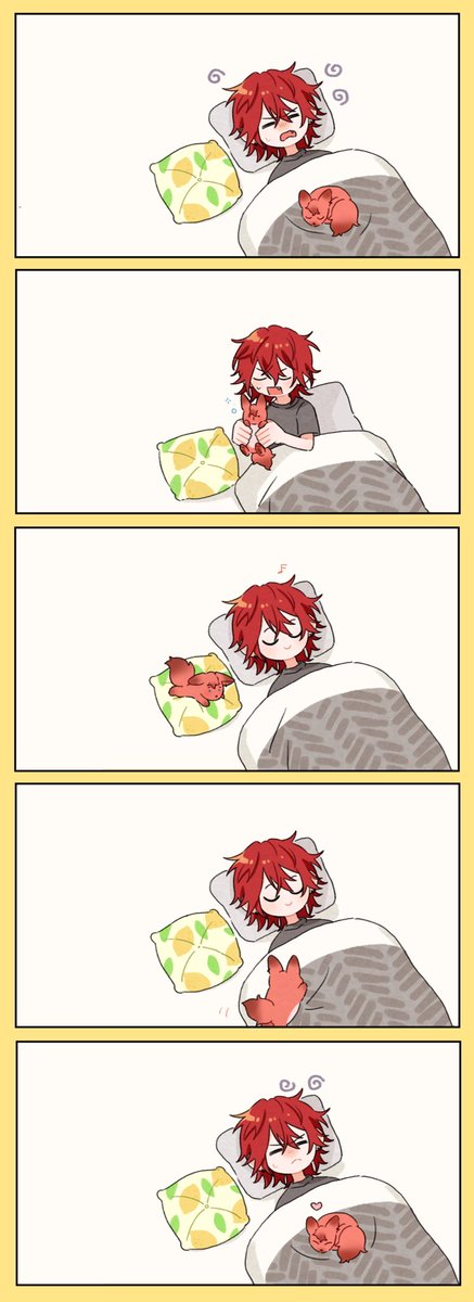 피님이 이야기하신 형아 잘 때마다 형아 배 위에 자리잡고 자는 동생 여우… 빌려주셔서 감사합니다🥺🥺🦊💞 Piさんが話してた兄さんが寝る時兄さんのお腹の上で寝る弟🦊です💞