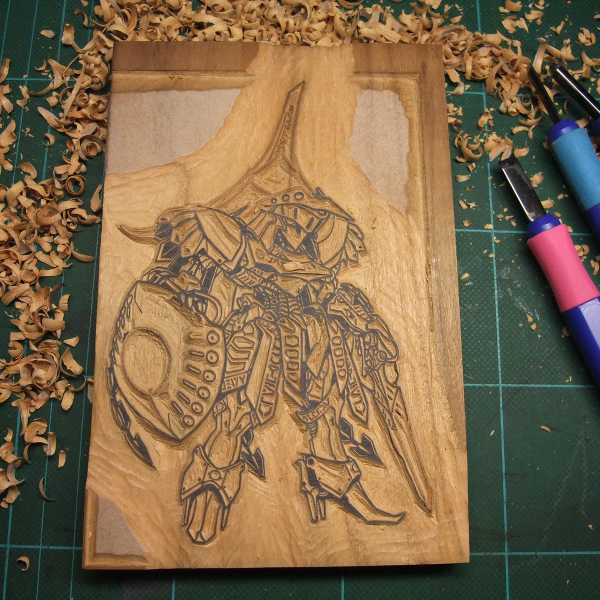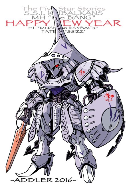 GTMザ・ダルマス 破烈の人形 リッター・ジェットMk3 呼び名が色々なのも #FSS の良い所だったり沼の入り口だったりw 年賀状で描いた(彫った?)やーつをちゃんと上げたかったので、せっかくならとホークヘッドVerも描いてみました☺️ twitter.com/ana_nibeme/sta…