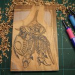 #多分私しかやってない 描いたイラストの線画のみを版木に彫って、カラー部分だけをプリントしたハガキに刷る #ハイブリッド年賀状 年の瀬に修行みたいなことしてます😂 ネーミングは友人が付けてくれました。