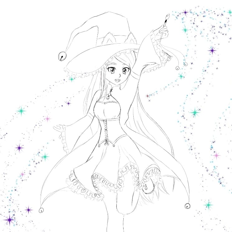 I went back to this #inktober drawing to practice my #digital coloring methods #digitalart #digitaldrawing #artoftheday #art #drawingoftheday #drawing #edenszero #rebeccaedenszero #rebeccabluegarden #hiromashima #witch #anime #manga #animewitch #animegirl #fanart #halloween