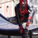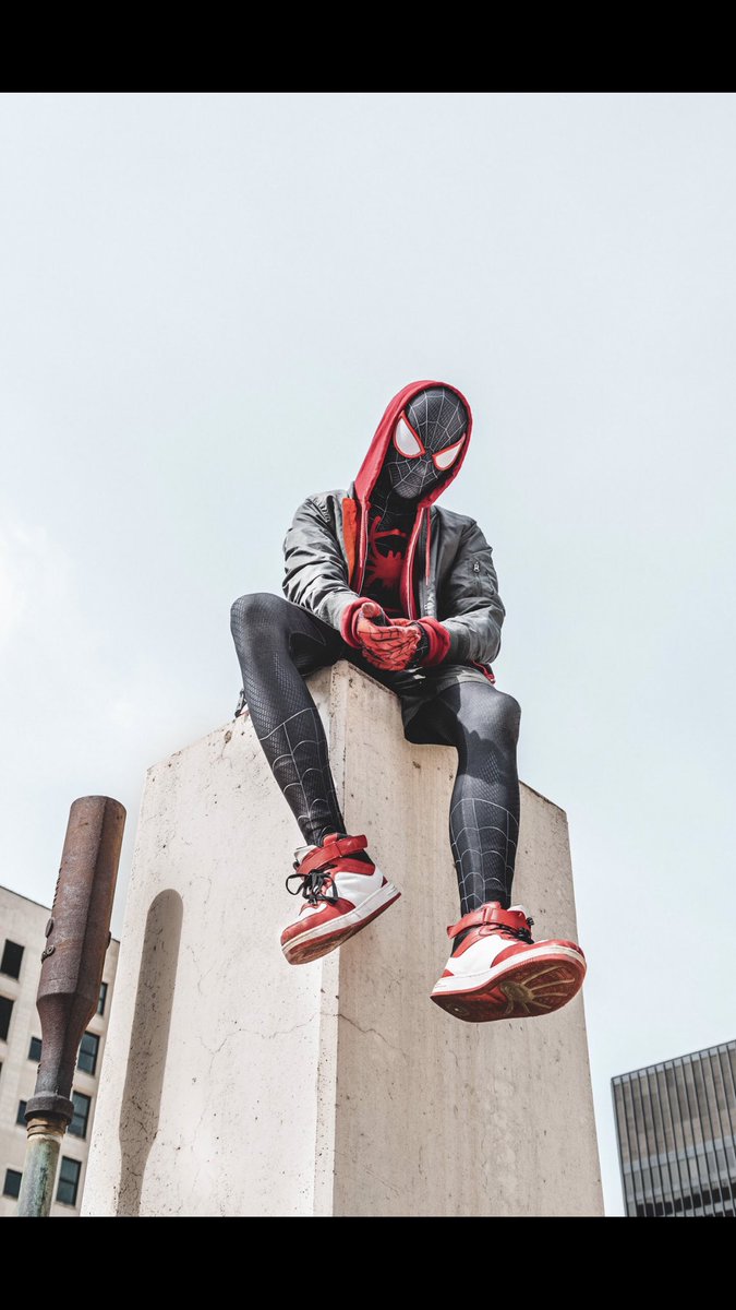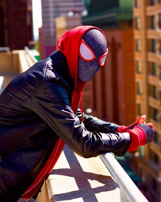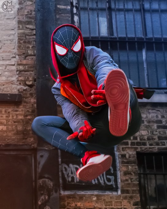 @cosSLAYcosplay “It’s a leap of faith” My favorite shot of my miles morales cosplay last summer. 🕷🖤 Photography- Mickey Zager IG @anakinmonkey #spiderman #cosplay #spidermancosplay #MilesMorales