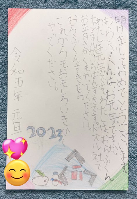 22 628 小4の娘が年末に頑張って書いてたおらふくんへの年賀はがき🎍🐰 おらふくんへ届けー💌𓂃𓈒𓂂𓏸 #見るかもわからん #ドズル社 23/01/02 21:45