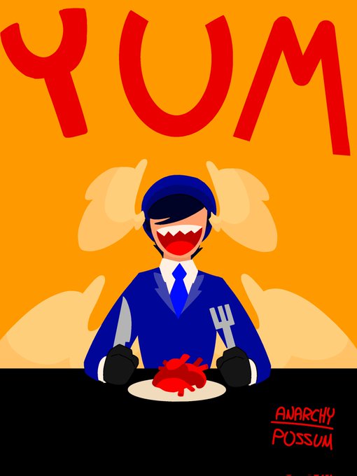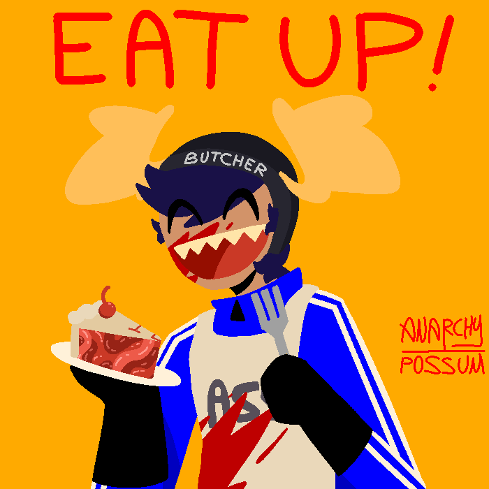 cw // cannibalism , bright colors the way i speedran this lol im gonna end up with an entire collection of lineless c!quackity art with a mustard background and red lettering some day #quackityfanart