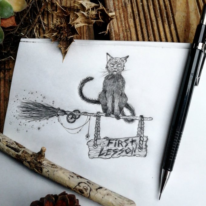 Inktober Jour 2 Balade à vélo / Bike ride N'est-il pas cute sur son balais à roulettes ? :3 . . . . . #inktober #moonchildinktober #illustration #darkart #witchcraft #autumn #bikeride #broomstick #witchy #blackcat #familiar #witch #firstlesson #intheair #nightchild