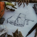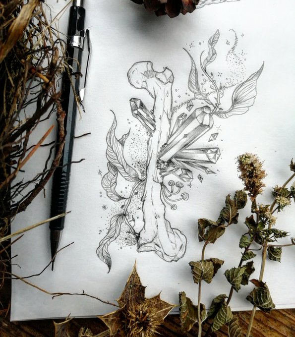 * Inktober Jour 3 * Os / Bones La nature reprend toujours ses droits. . . . . #inktober #moonchildinktober #illustration #darkart #witchcraft #autumn #bones #plants #mushrooms #witchy #cristal #magicgemstones #witch #life #death #resurrection