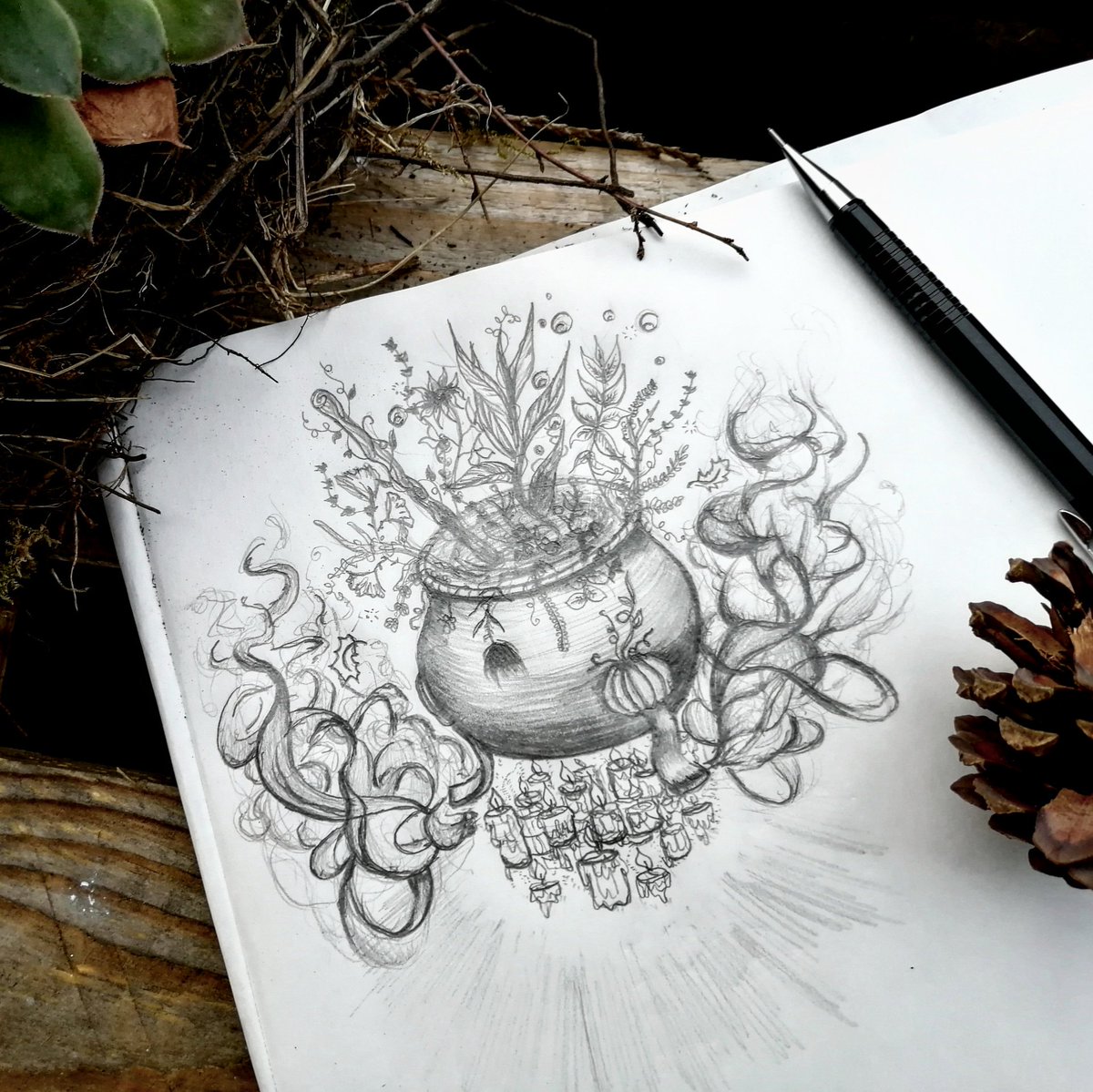 Inktober Jour 1 Caldron / Chaudron #Inktober2019 #moonchildinktober #caldron #drawing #witchcraft