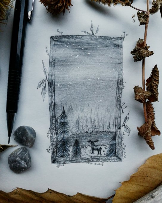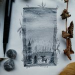* Inktober Jour 14 * Ciel étoilé / Night sky . . . . . #inktober #moonchildinktober #illustration #darkart #witchcraft #autumn #nightsky #deer #lac #reflection #stars #newmoon #beautifulnight #draw #landscapedrawing #nightchild