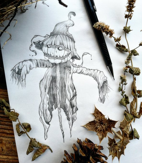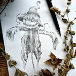 Inktober Jour 4 Épouvantail / Scarecrow . . . . . #inktober #moonchildinktober #illustration #darkart #witchcraft #autumn #scarecrow #pumpkin #jackolantern #hat #wood #puppet #crow #scary #horror