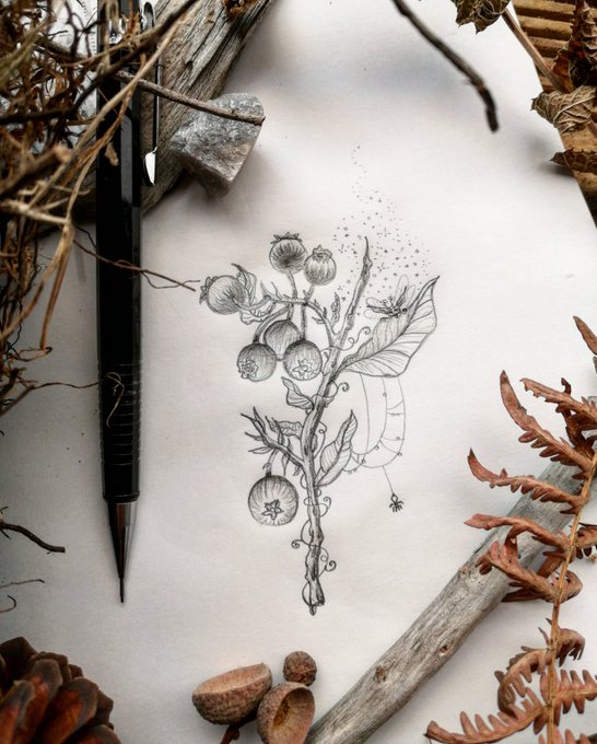 Inktober Jour 10 Baies / Berry . . . . . #inktober #moonchildinktober #illustration #darkart #witchcraft #autumn #berry #fruits #wildberry #plants #drawing #darkart #leaves #pixie #spider #wood #web