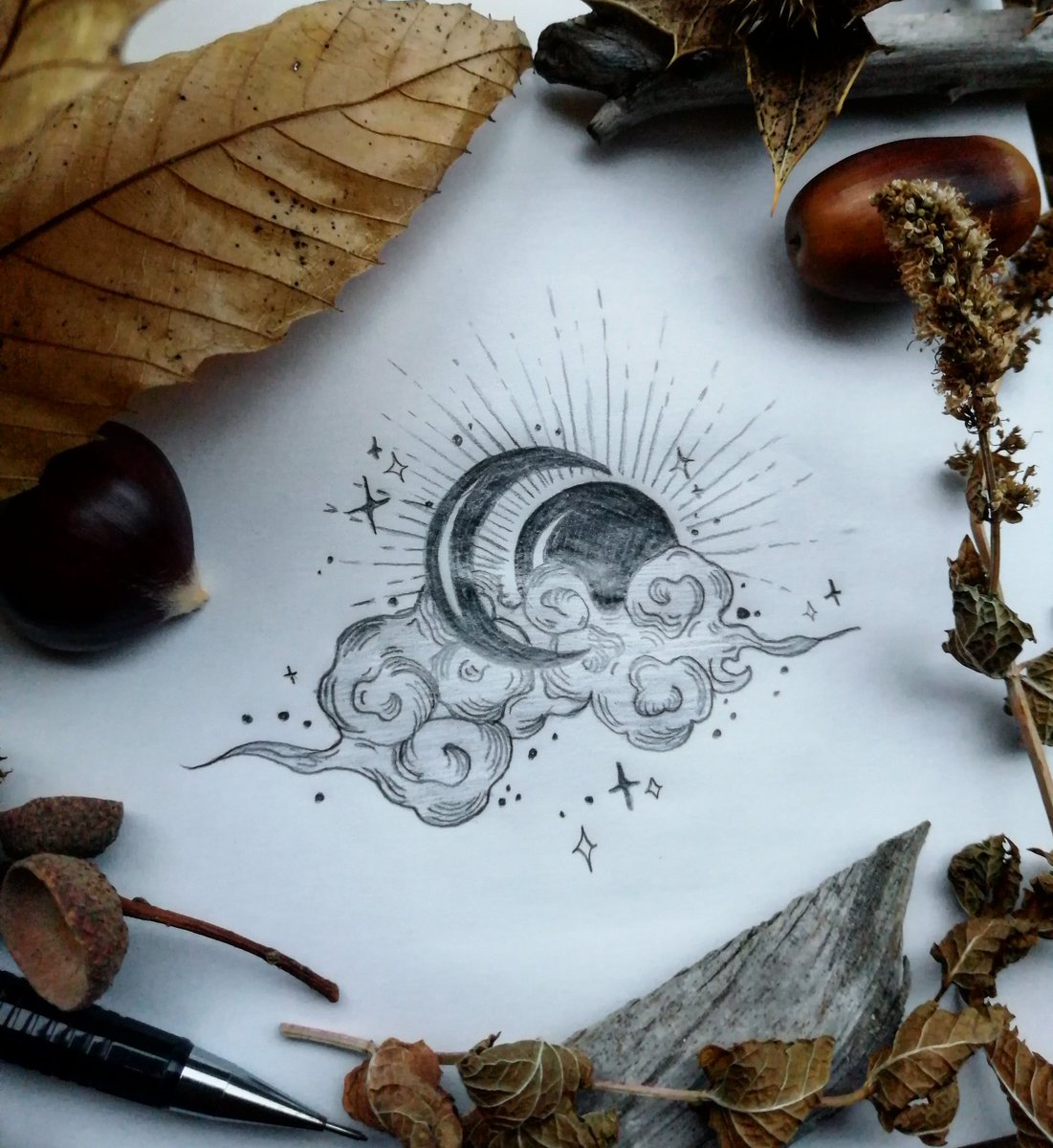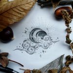 * Inktober Jour 17 * Nuage / Cloud . . . . . #inktober #moonchildinktober #illustration #darkart #witchcraft #autumn #cloud #nightchild #moon #sun #eclipse #magicnight #stars #draw #sparkle #nightandday