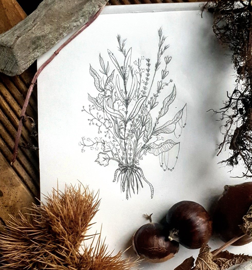 * Inktober Jour 18 * Herbes / Herbs . . . . . #inktober #moonchildinktober #illustration #darkart #witchcraft #autumn #herbs #plants #witchspells #spell #cleansing #purifying #negativeenergy #lavander #whitesage #draw