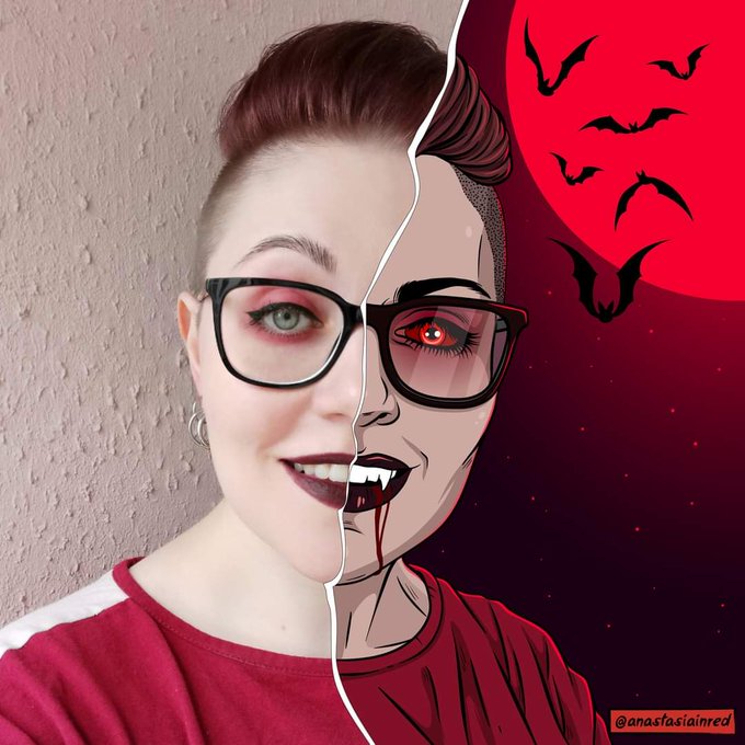 Well yeah, I turned into one of my own characters a long time ago 🦇 #horrorartist #darkart #NFTartist #artvsartist #vampire #darkartist
