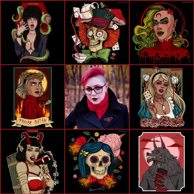 #PortfolioDay Hi! I'm a dark, horror artist and illustrator from Russia 😈 I specialize in creating artworks for web sites, t-shirts, books, music covers, etc. I also work on my own NFTs and sell prints in my Etsy shop. #darkart #darknft