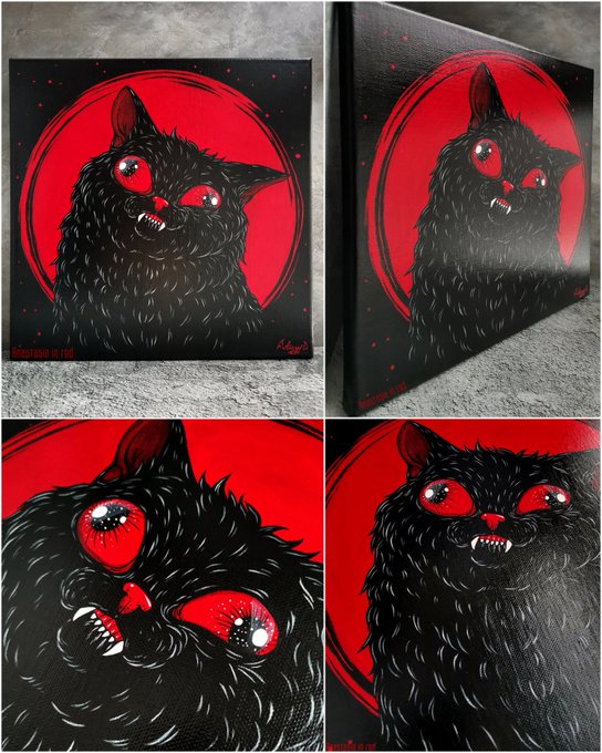 Gm NFT Community! I'm rarely seen on Twitter these days. Now I'm working more and more with traditional materials. And recently painted my legendary Derpy Black Cat with acrylic on canvas! Do you still remember him? He is my kinda cult character 😸 #darkart #NFTartists