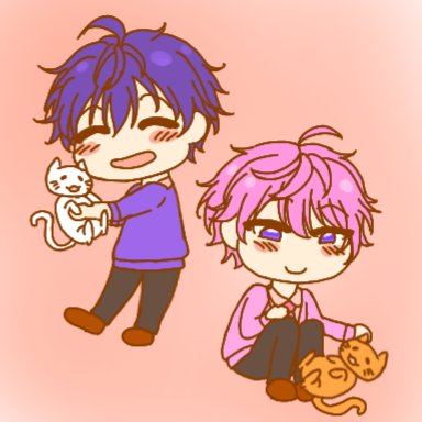 猫ちゃんと遊ぶななさと!ふわふわーるど 💜💗 #すとぷりギャラリー #なーくん #さとみくん #猫の日