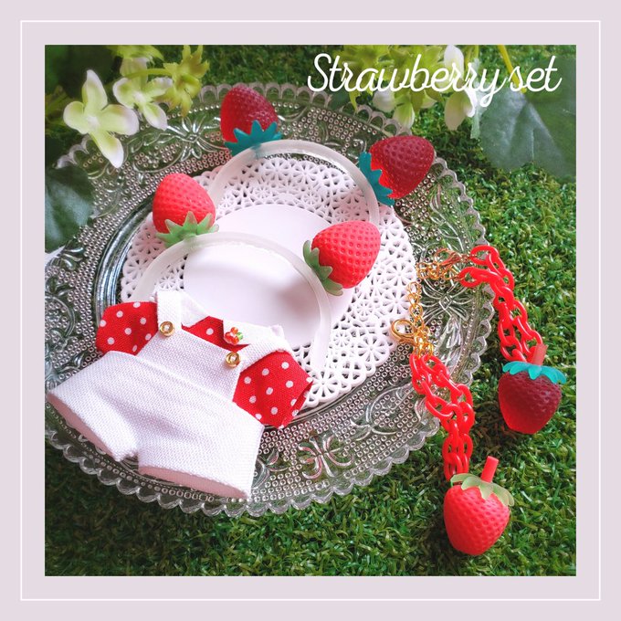 🐏通販案内🐏 2月23日(木)21:00〜 🆕Strawberry set🍓 ・カチューシャ(ノーマル/クリア) ・シャツ+サロペット ・ドリンクポシェット(ノーマル/クリア) ┈┈┈┈┈┈┈┈ ※それぞれ別々で購入できます 間に合いそうなので3つ全て通販します!よろしくお願いします! #あんちょびぽてと通販