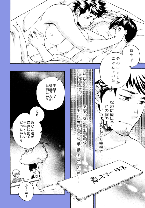 web再録「手紙」① ミツバさんのお誕生日に何かしたくて、web上では初公開の過去作をupしました。 2014年発行の「色悪/白くいたいけな手」というオフセット冊子の付録コピー小冊子で、収録作「白くいたいけな手」のスピンオフ作になります😄 #沖田ミツバ生誕祭2020 #沖田ミツバ誕生祭2020
