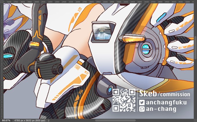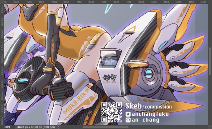 5 22 Skeb No.44 girl WIP メカ描き込み中。高価なカーボンも、絵なら使い放題! 23/07/22 20:33