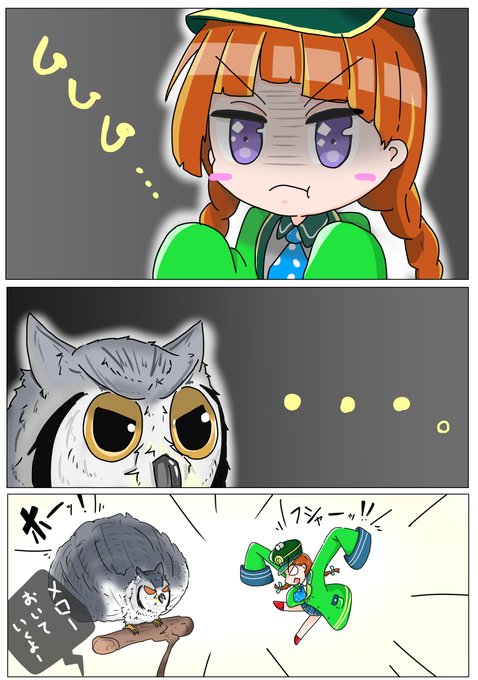 泊まった旅館にコノハズクが居たので メロVSコノハズク #駅メモファンアート