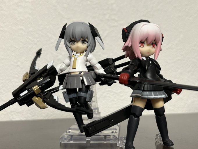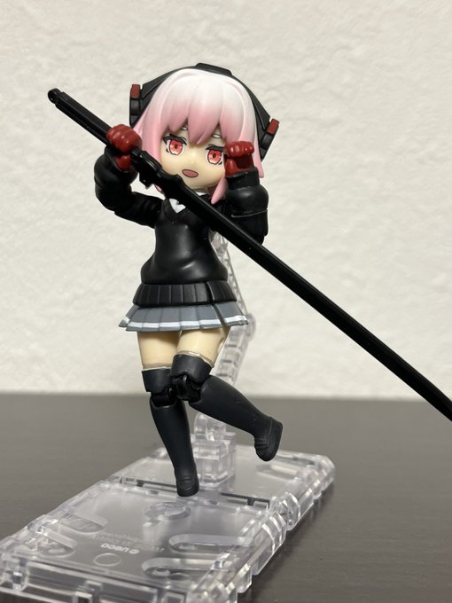 もものヒビ割れを直すついでに 手をアクアシューターズのに変えました!良い感じです! 手首回るなら腕のロールいらないって本人が言ってたのでまた繋げてやりました(゚∀゚) ももは結構アラが目立つಠ_ಠ やっぱり一度バラさないとキレイにならないかなぁ #デスクトップアーミー #重兵装型女子高生