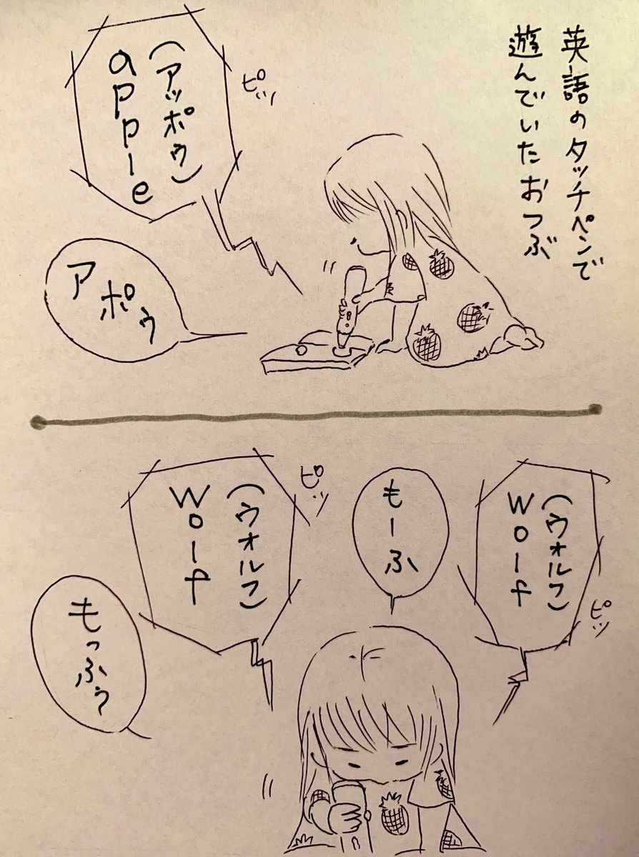 1 27 一生懸命リピートしてるけど、なんかおかしくて可愛い。 #おつぶ劇場 #小林家 #二歳児 #育児漫画 #2歳児のリアル #育児 #日常 #英語 #英語タッチペン #ヒアリング #ニュアンスで喋る #おっふ 20/06/13 13:04