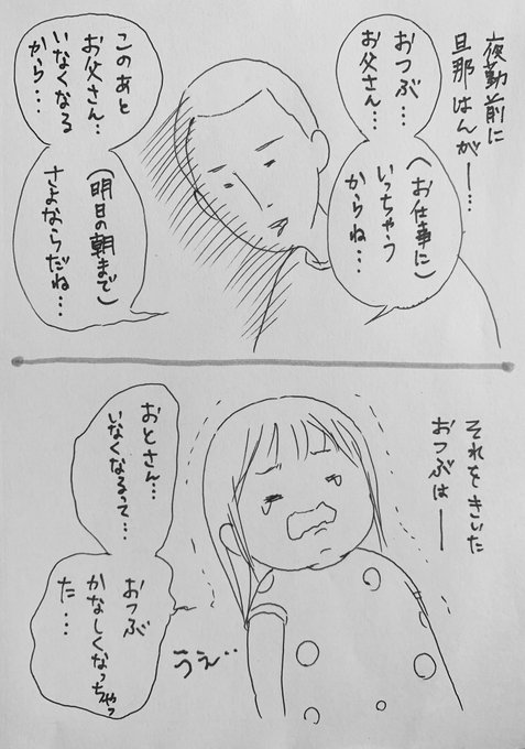 1 30 それとこれとは別。 でも言葉を素直に受け止めて、お父さんがいなくなるのは悲しくて嫌だという気持ちが溢れてました。 #おつぶ劇場 #小林家 #二歳児 #育児漫画 #2歳児のリアル #育児 #日常 #お父さん #いなくなっちゃう #悲しくなった #素直 #それとこれとは別 20/07/30 12:51