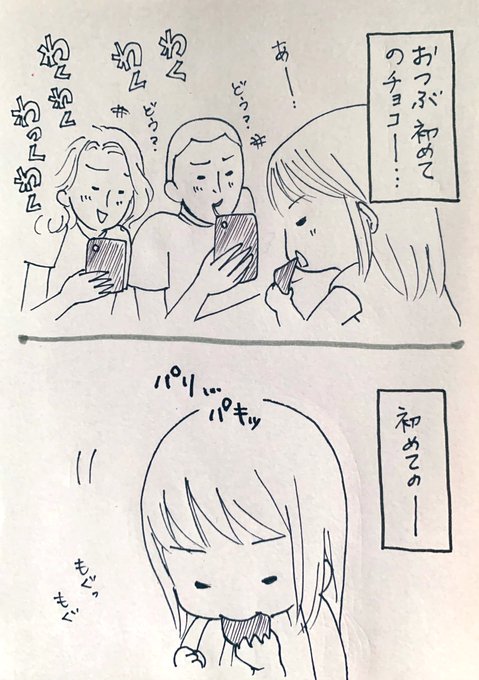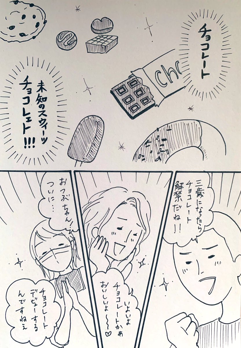 三歳になって、 初めてチョコレートを食べた時のリアクション。 #おつぶ劇場 #小林家 #三歳児 #育児漫画 #3歳児のリアル #育児 #日常 #初めてのチョコレート #リアクション