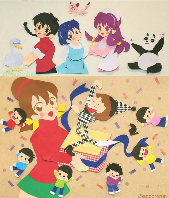 乱馬くんとあかねちゃんとPちゃん #きなこのペーパークラフト