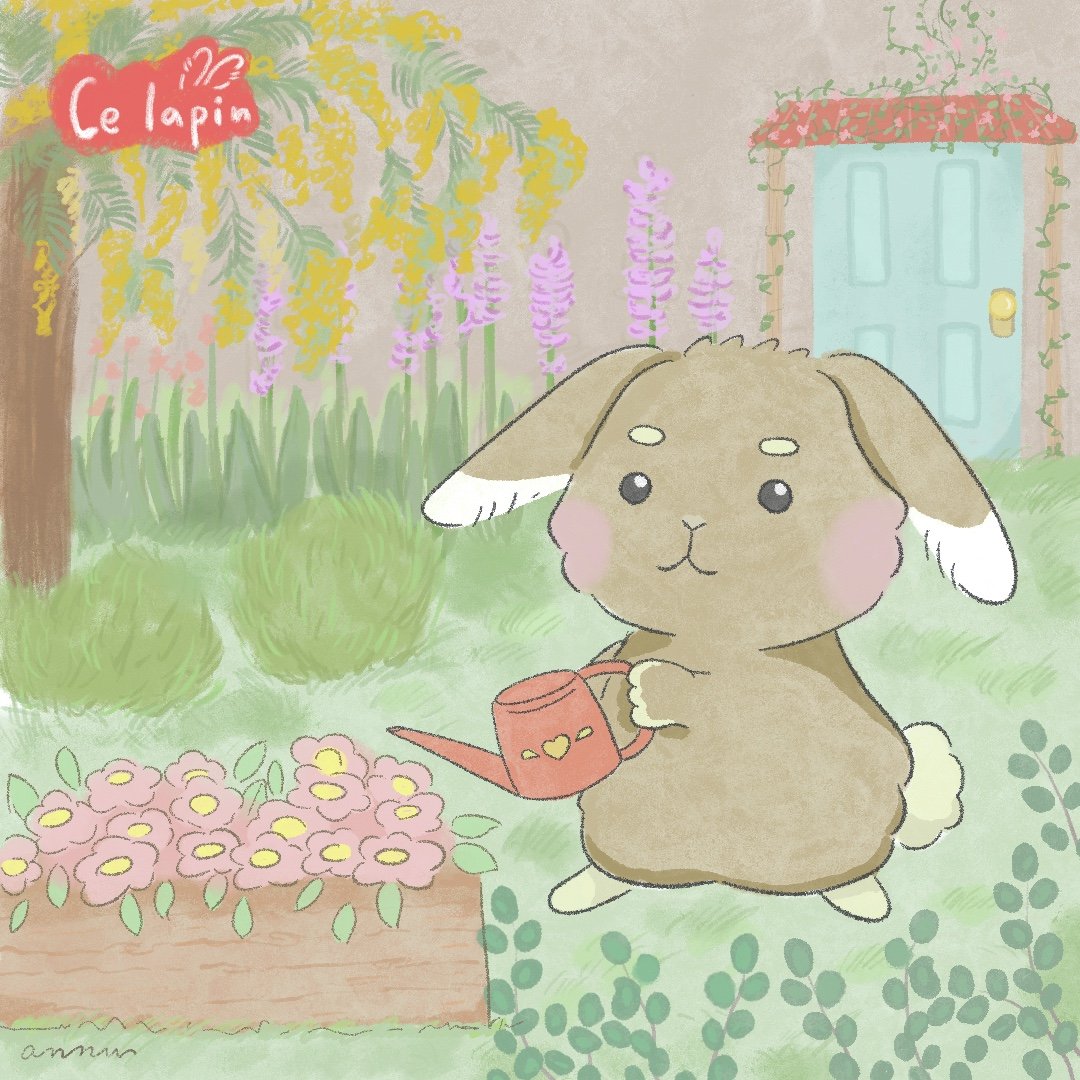 0 5 お花の水やり #イラスト #illustration #うさぎさん 22/06/10 07:25