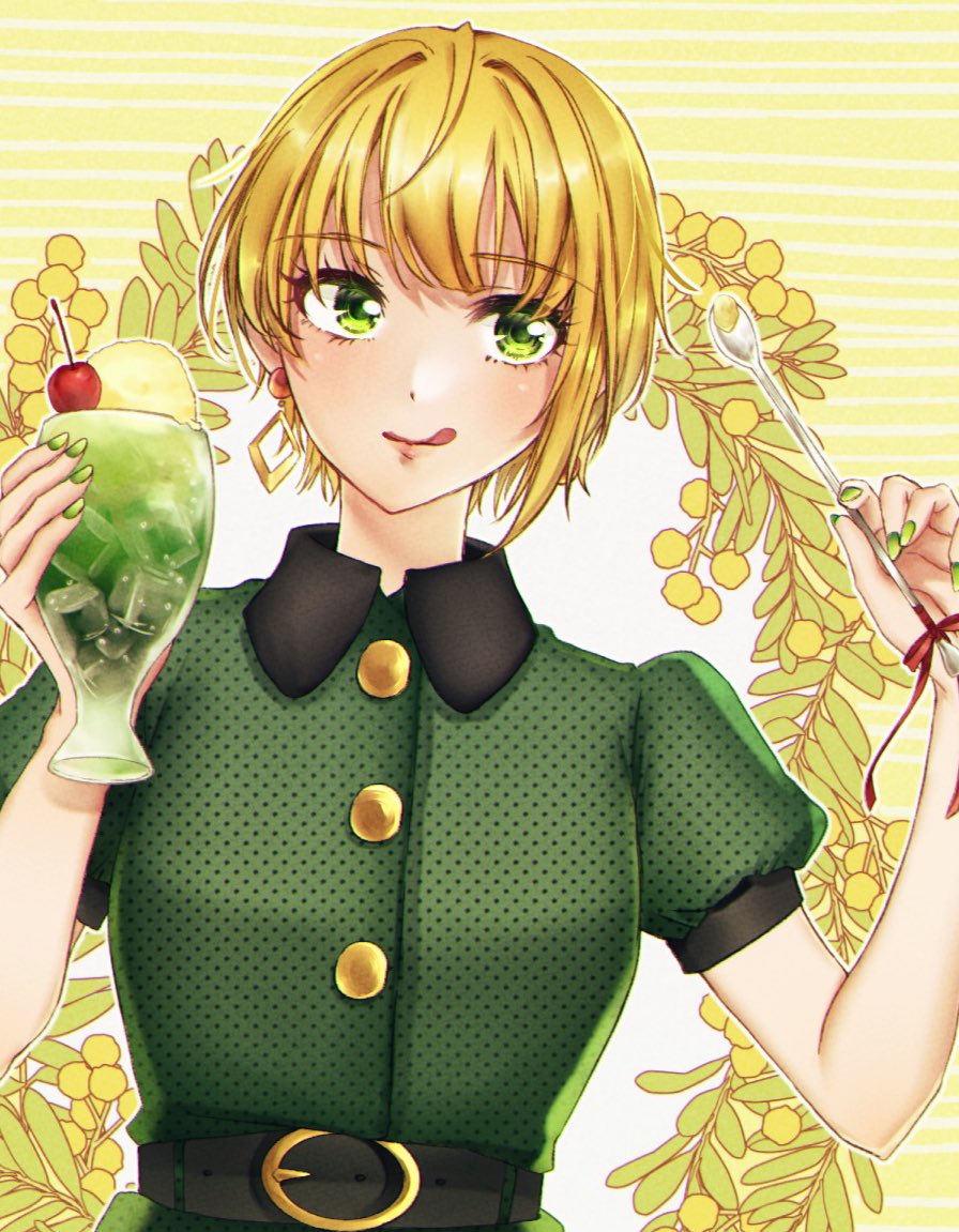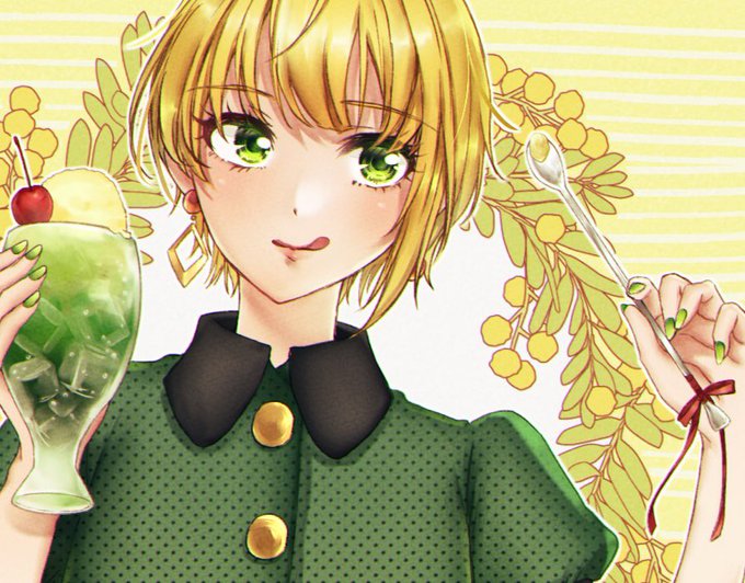 48 86 レトロ風ワンピースフレちゃんとクリームソーダ🍈 #宮本フレデリカ イラストの全体は歌姫新刊にて 21/08/09 12:04