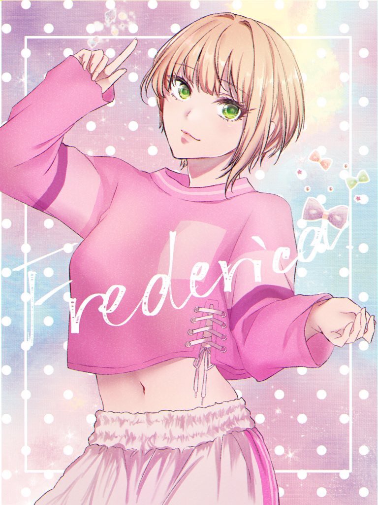 レトロ風ワンピースフレちゃんとクリームソーダ🍈 #宮本フレデリカ イラストの全体は歌姫新刊にて